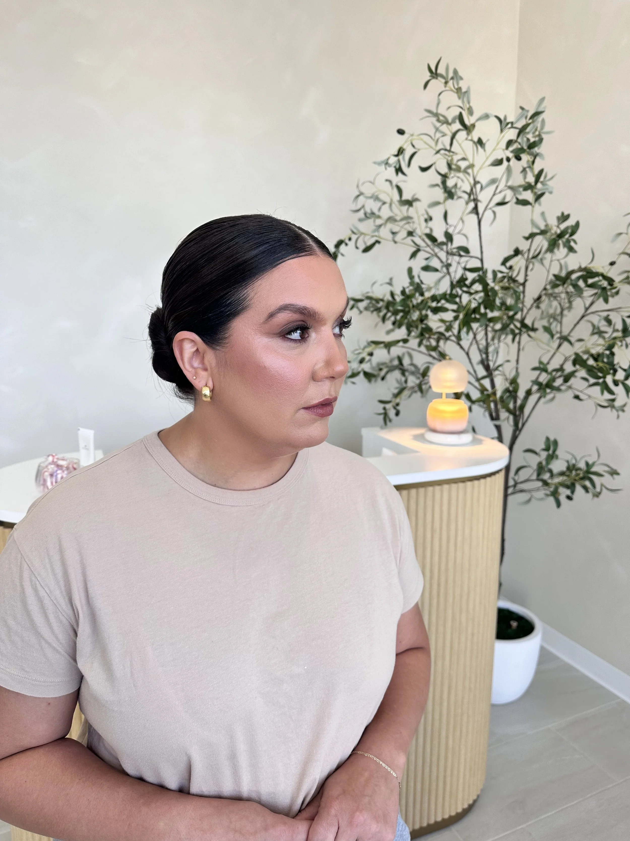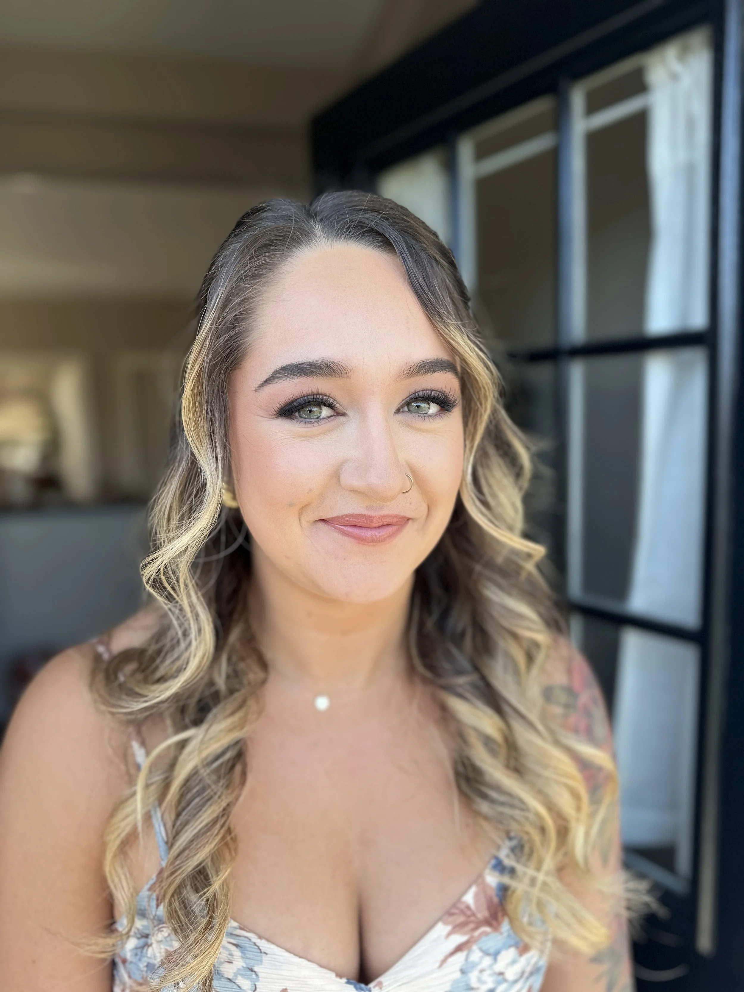 soft glam makeup, voluminous blow out, photoshoot hair and makeup